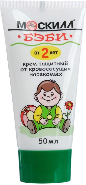Крем от комаров "Москилл-БЭБИ" является детским средством, предназначенным для защиты маленьких детей от укусов насекомых. Продукт поставляется в удобной тубе объемом 50 мл и имеет легкую текстуру, которая быстро впитывается в кожу.