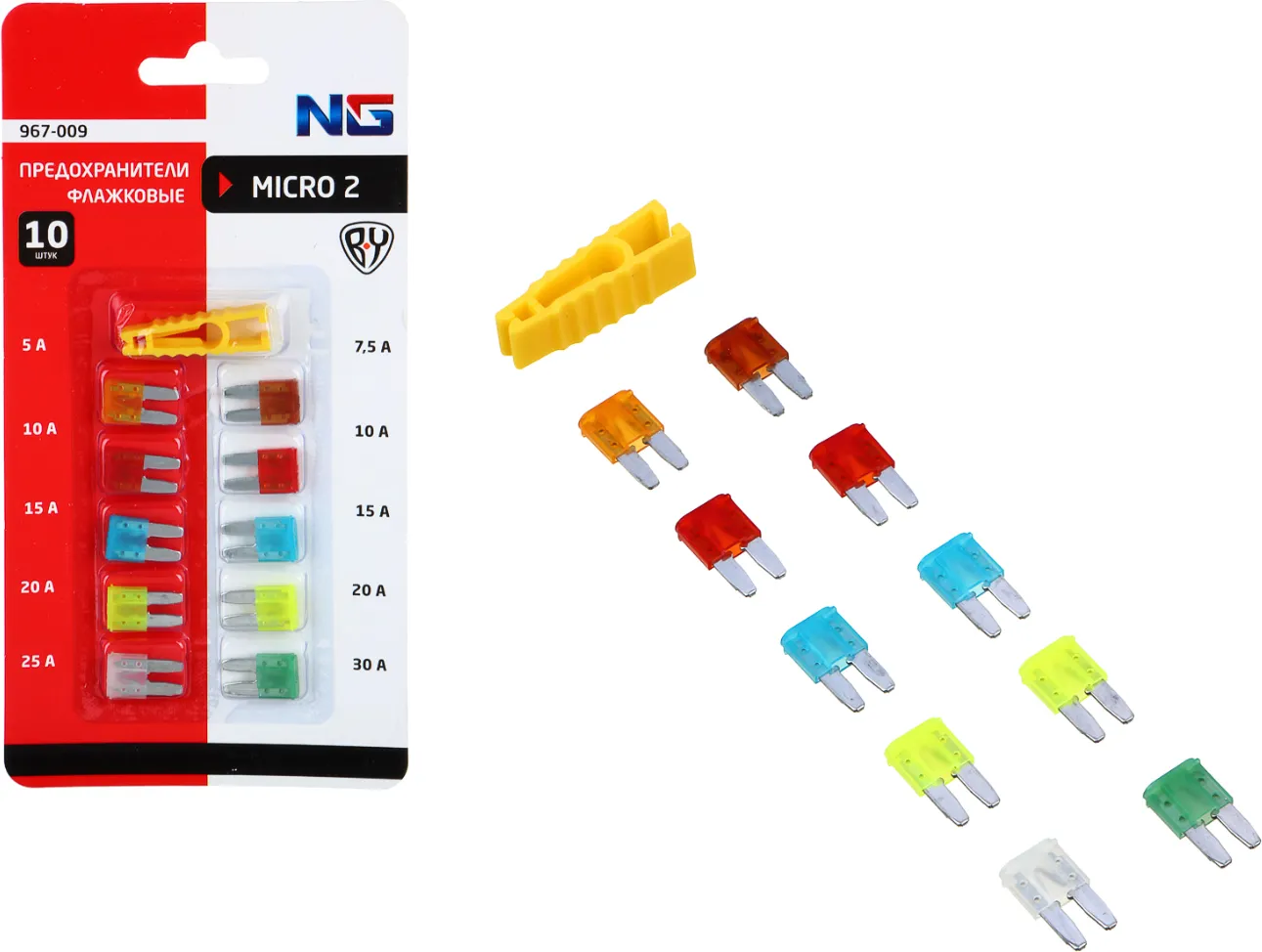 Набор автомобильных предохранителей "NG Micro2" – это 10 флажковых предохранителей в блистере с пинцетом. Обеспечивают эффективную защиту автомобиля от короткого замыкания.