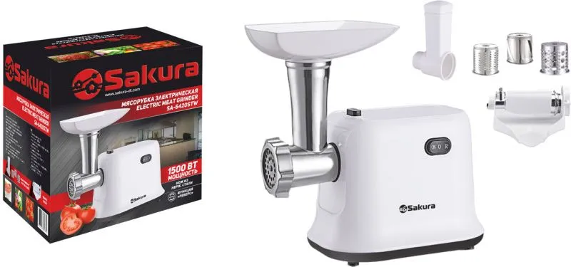 В комплекте: 3 насадки-тёрки (только для моделей SA-6420SW, SA-6420STW), соковыжималка для томатов (только для модели SA-6420STW).