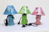 Работает от электросети (включатель-вилка), свет загорается от нажатия на кнопку