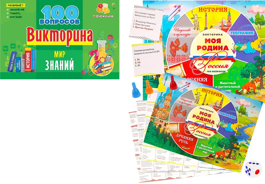 Игра настольная Викторина 100 вопросов (Моя Родина Россия // ИН-7002)