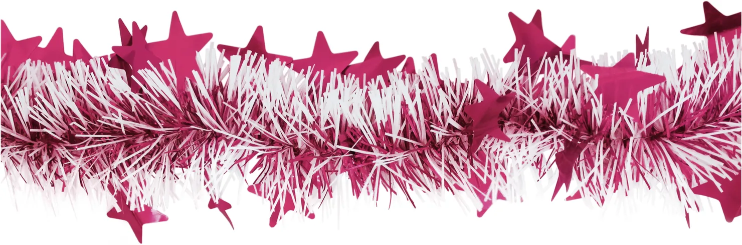 Мишура с металлическим блеском, имеет комбинированный цвет благодаря белым элементам, обрамлена звездами.