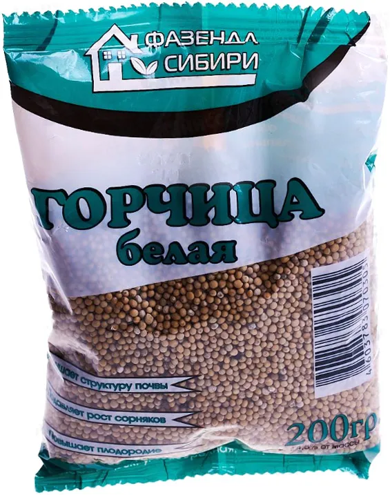 Горчица белая выращивается как кормовая и медоносная культура, применяется как зеленое удобрение, семена горчицы используются в пищевой промышленности. Горчица ценится за способность быстро прорастать и наращивать относительно большую массу в короткий холодный период. Показывает высокую урожайность зеленой массы, в которой накапливается 22% органических веществ, 0,71% азота, 0,92% фосфора, 0,43% калия. Во время цветения привлекает полезных насекомых.